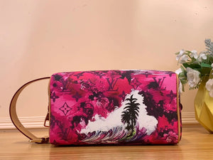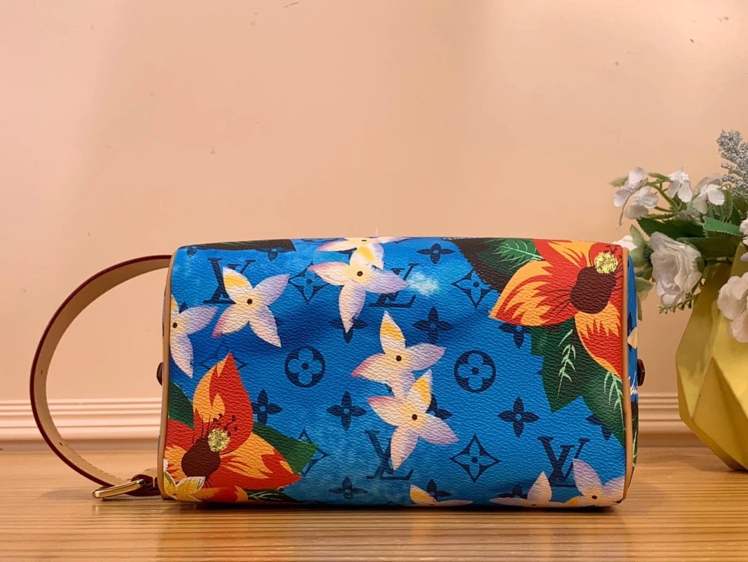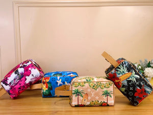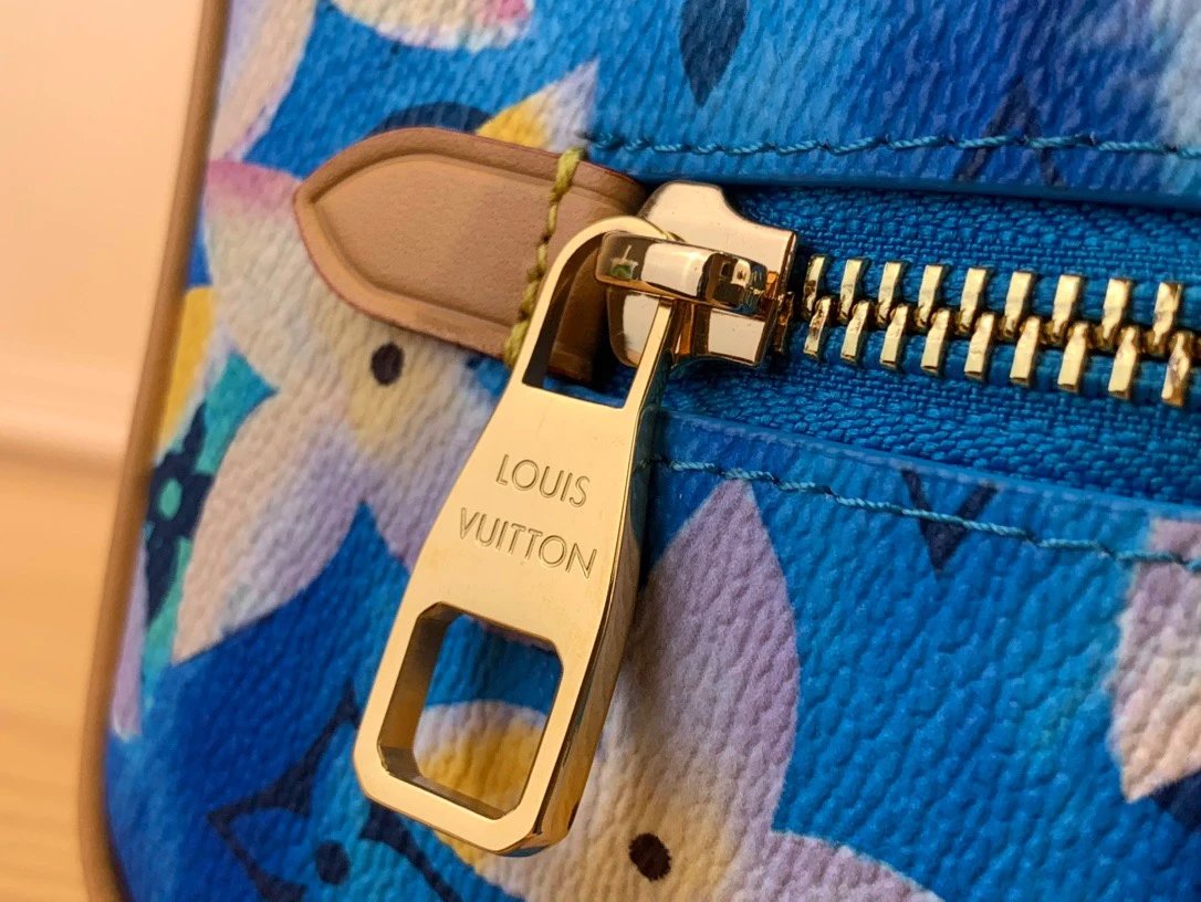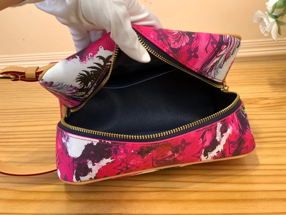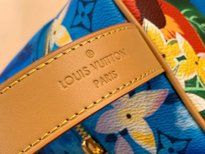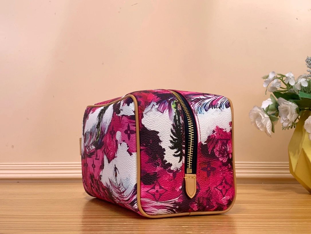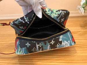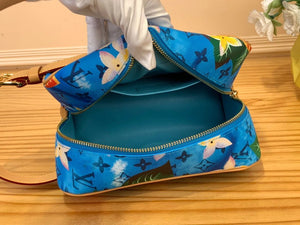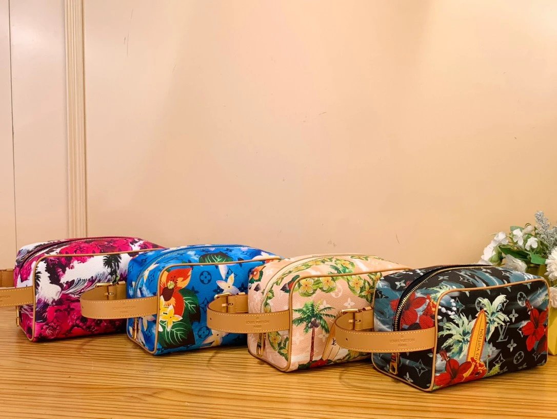 Locker Dopp Kit Ms Is Made of Colorful Monogram Surfin' Coated Canvas by Pharrell Williams with Cowhide Leather Decoration. Dopp Is Perfect for Storing Beauty Essentials and Can Also Be Used as a Stylish Pouch. Wide Adjustable Handle Can Be Used to Hang It on a Hook Or Carry It with You.