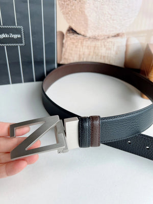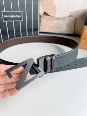 Zegna Belt Top version Original Imported Calf Leather Belt for Business Men Pant Belt3.5CM Belt Double-Sided Dual-Use Men's Needle Belt Suitable for Men's Business Double-Sided Cowhide Classic Belt Gift Box Packaging
