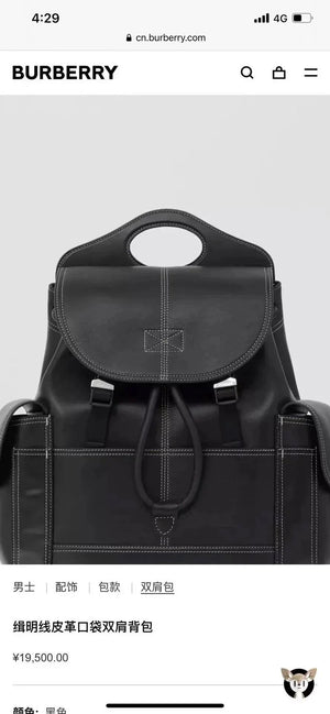 Burberry backpack Top version 【Original Leather】2022Counter Latest Jimingxian Leather Backpack Full Leather Outer Stitching Men's and Women's Same Backpack Sports Bag Travel Bag Luggage Bag Computer Bag Backpack Men's and Women's Bags