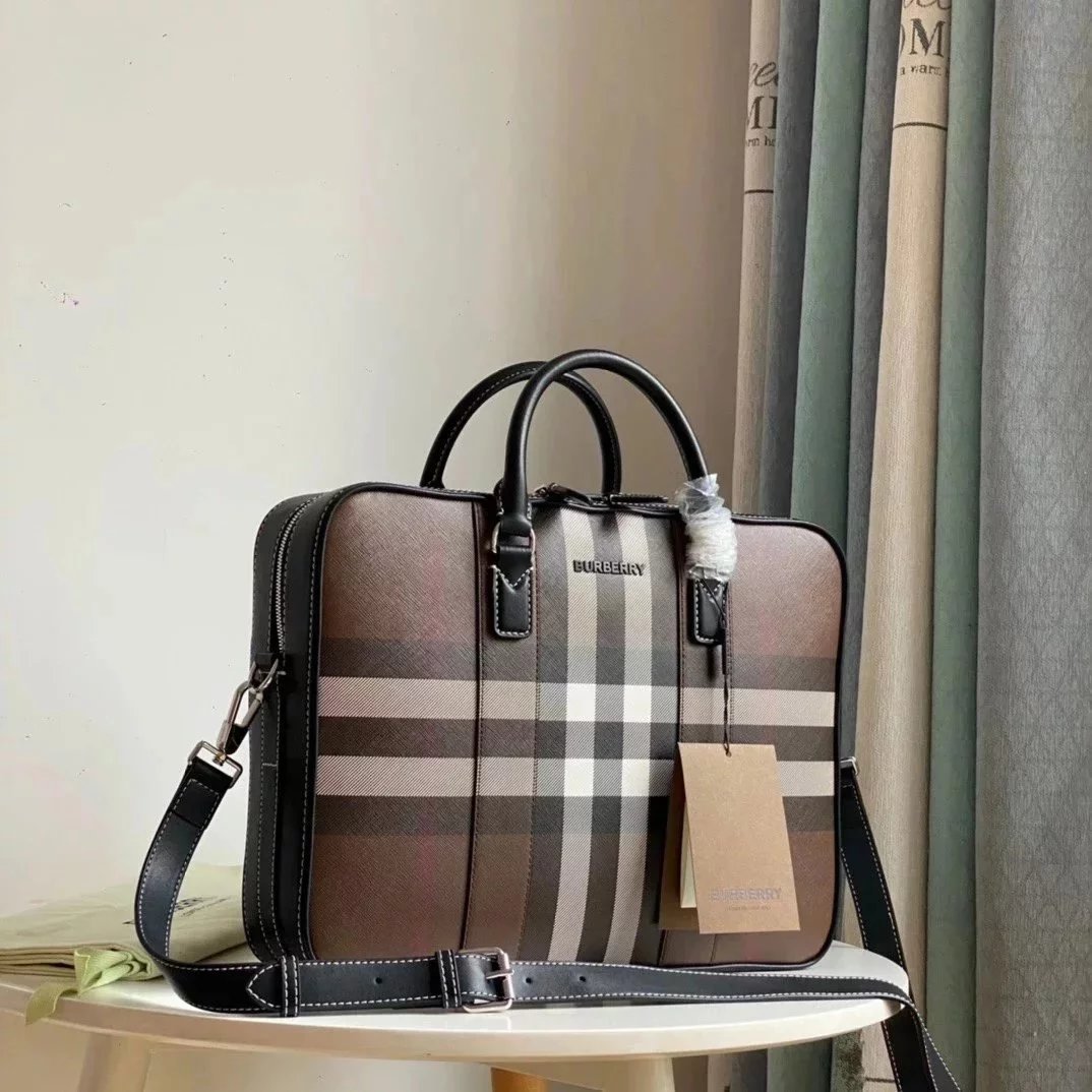 Burberry backpack Top version 【Original Leather】2022New Men's Computer Bag Made of Plaid and Italian Tanned Leather Business Briefcase Men's Handbag Business Trip Meeting Briefcase burerey Men's Bag