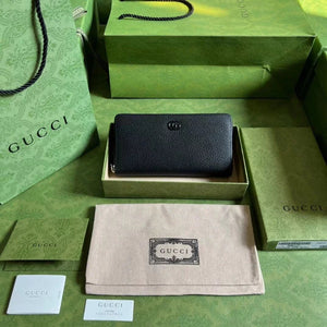 With a Full Set of Original Green Box Packaging GG Marmont Series Long Purse. This GG Marmont Card Holder Is Made of Classic and Durable Black Leather, Adding a Classic Work to Aria-Fashion Aria Series. Double G Accessories Originated from the Belt Buckle Design 1970s, and This Wallet Is Made of the Same Color Resin. The Combination of Classic Design and Monochrome Blending Highlights the Modern Fashion Style.
