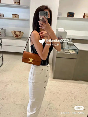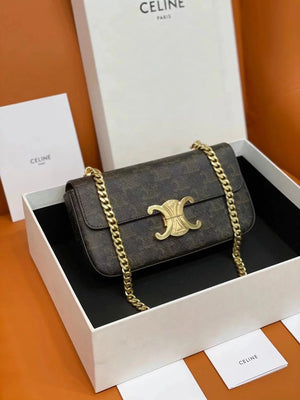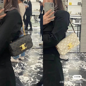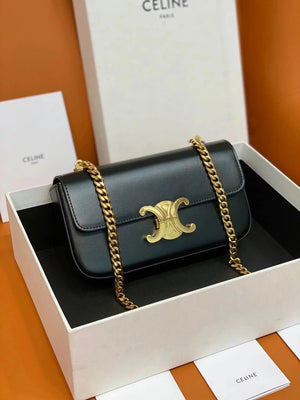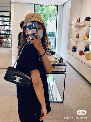 Celine women's bag Top version 【Original Leather】2022Spring and Summer New Triomphe Short Chain Small Size Arc De Triomphe Underarm Bag Cowhide Genuine Leather Bag Handbag Square Bag Women's Bag Underarm Bag Clutch Mini Chain Bag197993