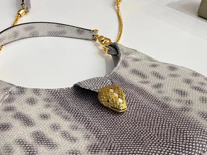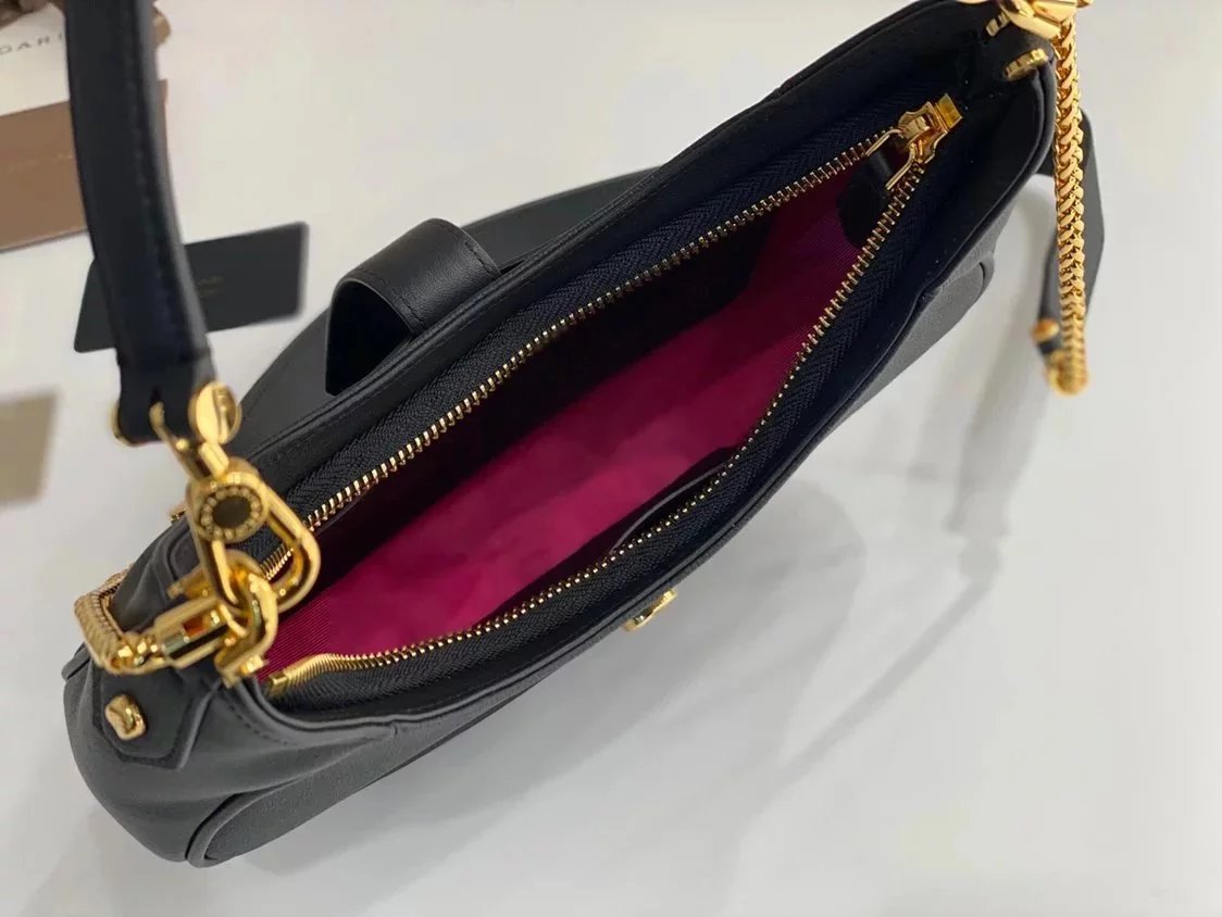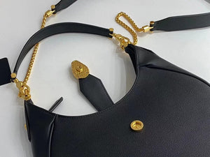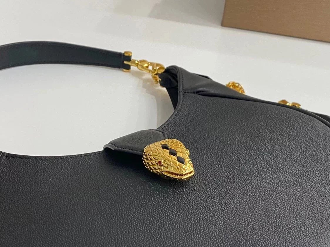 The New Serpenti Ellipse Series Small Size Crossbody Bag Has Unique Shapes, Iconic Details and Changeable Charm. This Daily Bag Is Made of Black Calfskin and Is Made of Urban Calfskin in the Center, smooth Calfskin on Both Sides with Gold-Plated Brass Accessories. the Charming Classic Snake Head Is Decorated with Black Onyx Scales and Red Enamel Eyes, and the Front Is Magnetic Snap Hidden under It. With a Single Compartment, Adjustable Chain, Leather Shoulder Strap and Detachable Leather Handle, It Can Be Worn as a Classic Shoulder Bag. Practical Top Zipper with an Internal Pocket, an External Pocket and Bvlgari Bulgari Metal Logo on the Back.