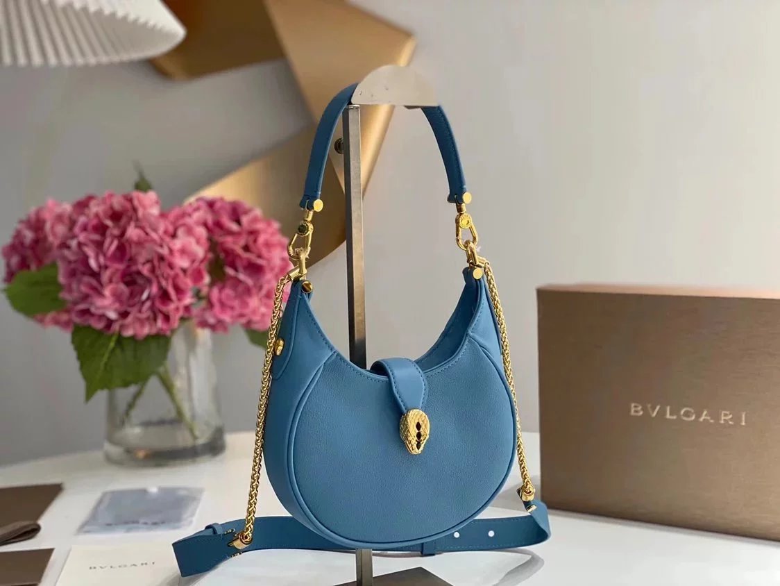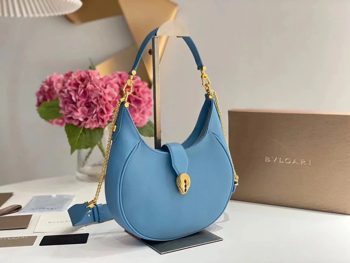 BVLGARI Bag Top version 【Original Leather】2022Spring and Summer New Women's Bag BVLGARI”Crossbody Bag Underarm Bag Blue Brand New SERPENTIELLIPSE Series hobo Bag Small Size Crossbody Bag Shoulder Bag Handbag Underarm Bag Cattle Leather Bag