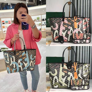 Goyard Bag Top version 【Original Leather】Counter New170Anniversary Special Custom Camouflage Graffiti Mother and Child Bag Tote Bag Shopping Bag SAINT Small Size Tote Bag Vegetable Basket Bag Backpack Women's Bag Graffiti Tote Bag