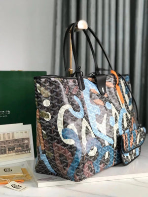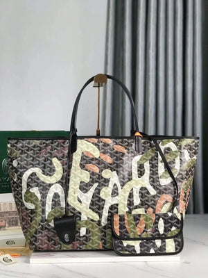 [Gojia] Special Customized Camouflage Graffiti for the 170 Th Anniversary. Saint Louis Small Size Tote Bag Adopts a Redesigned Special Edition Goyardine Canvas Pattern, Which Skillfully Combines Camouflage Printing with the Classic Colors of the Forest, full of Art and Vitality