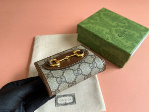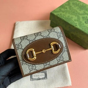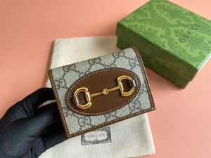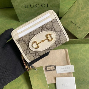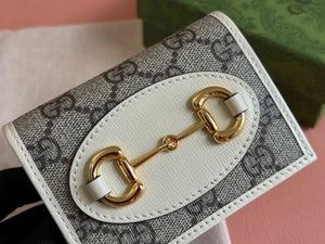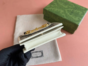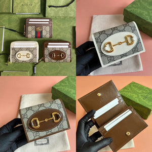 Gucci Wallet Top version 【Original Leather】Men's and Women's Mini Purse Card Holder Horsebit Buckle Short Wallet Wallet Men's Wallet Women's Wallet Short Wallet1955Series Short Card Holder621887