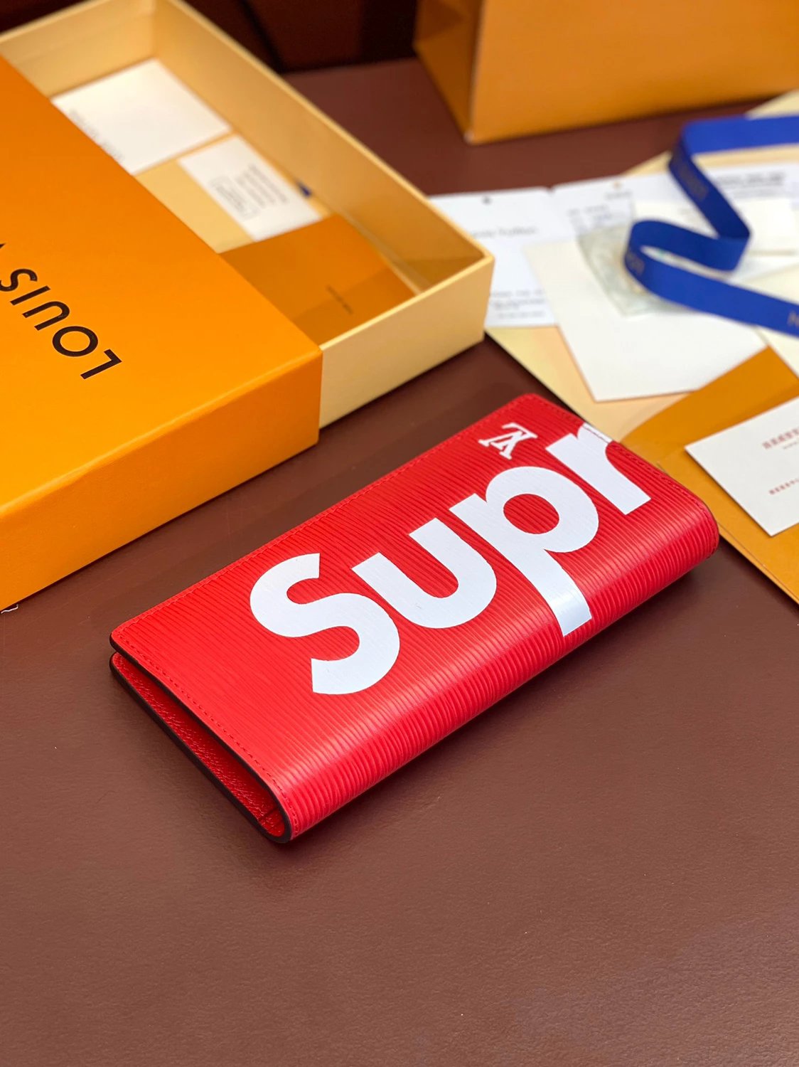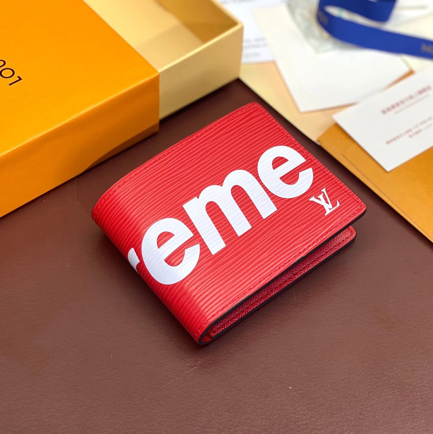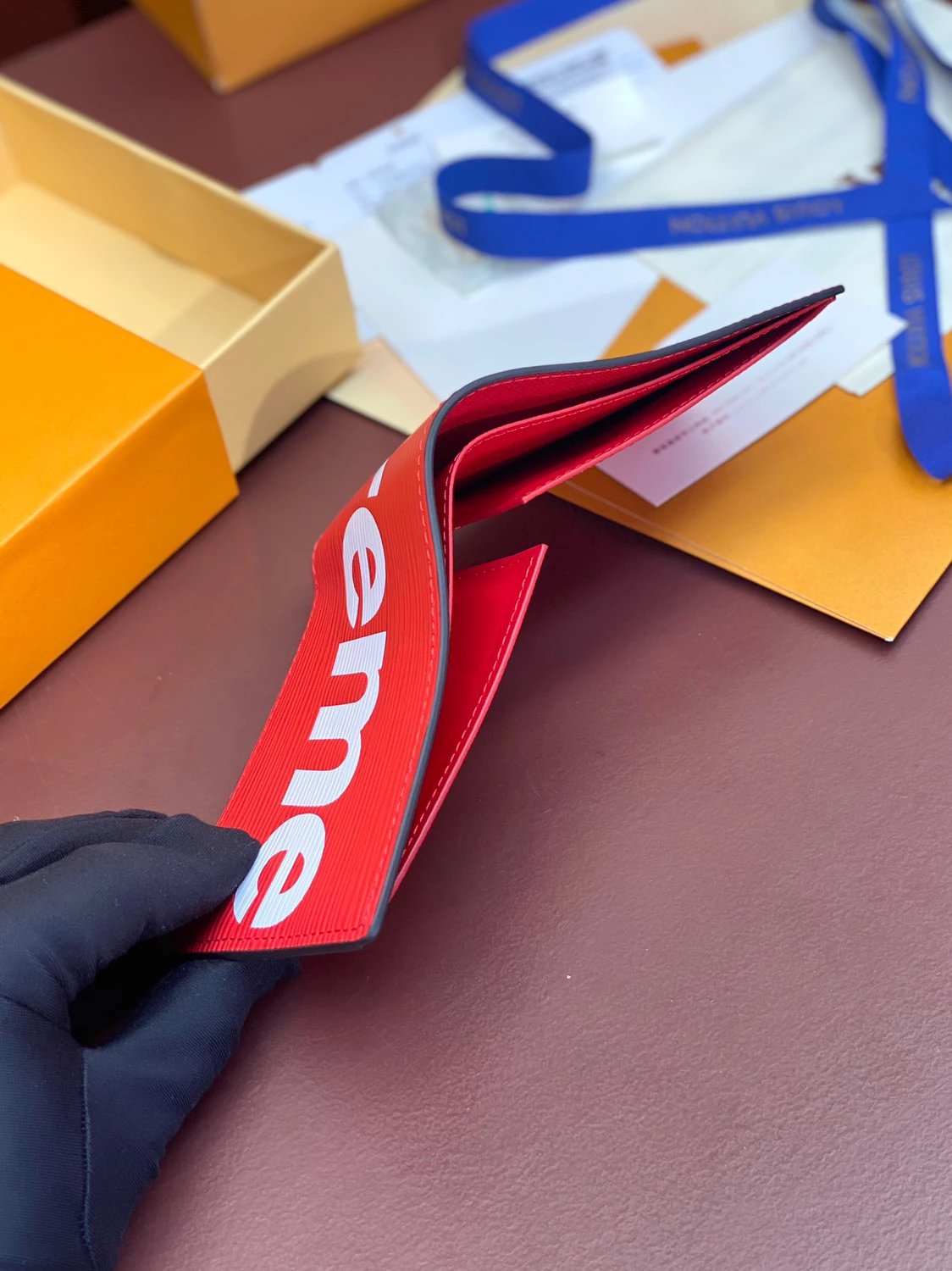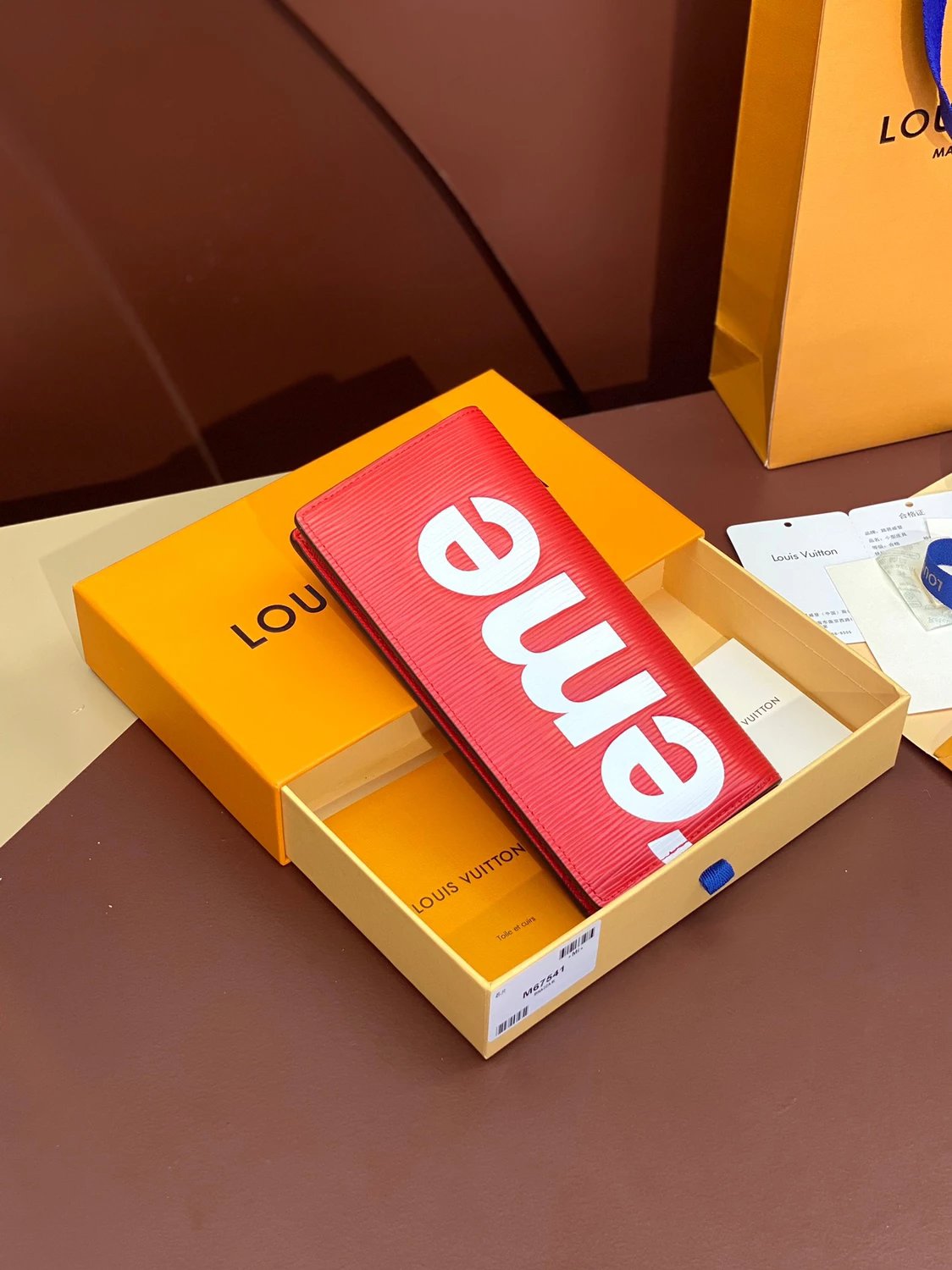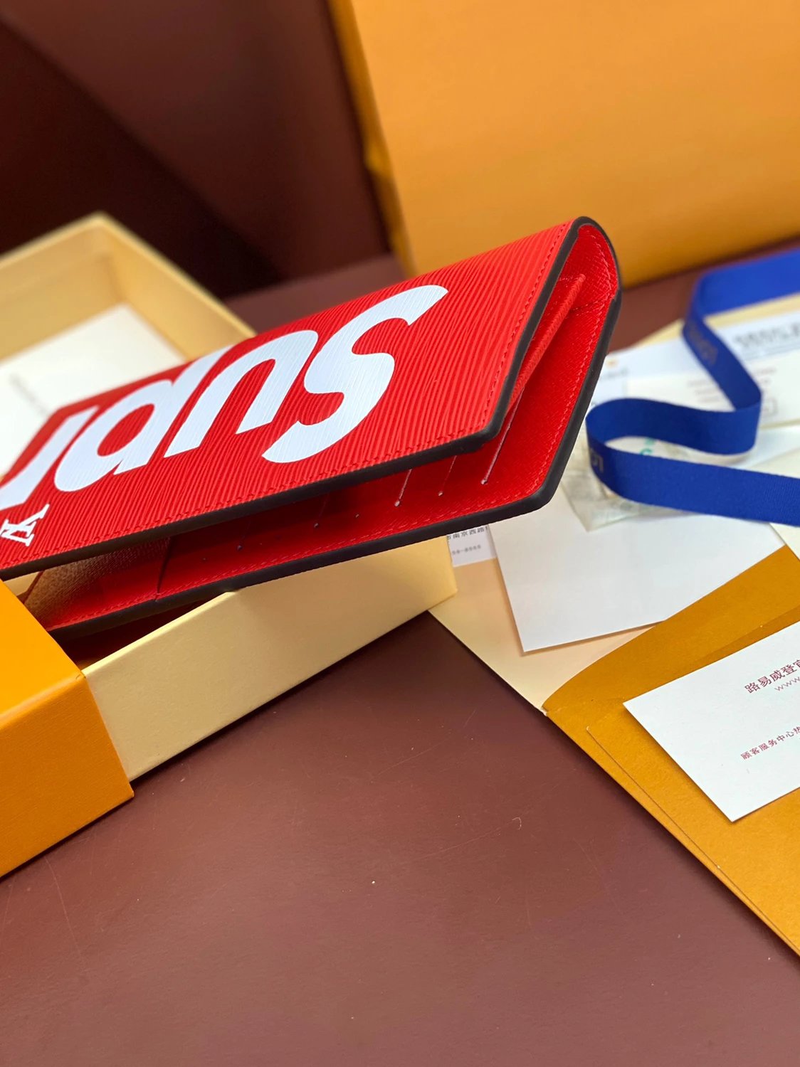 Supreme Is the Most Popular Official. Supreme Was Founded by James Jebbia 1994 in the United States Street Tide Brand. Lv Water Ripple Multiple Wallet Is Mainly Based on Skateboard Hip-Hop Culture. It Has Excellent Hand Feeling and Is Durable. It Is Made of **Cowhide and Is Full of Vitality and Charm Ten Times. Size: 11.5X9X1.5cm. M67543 Red/Black