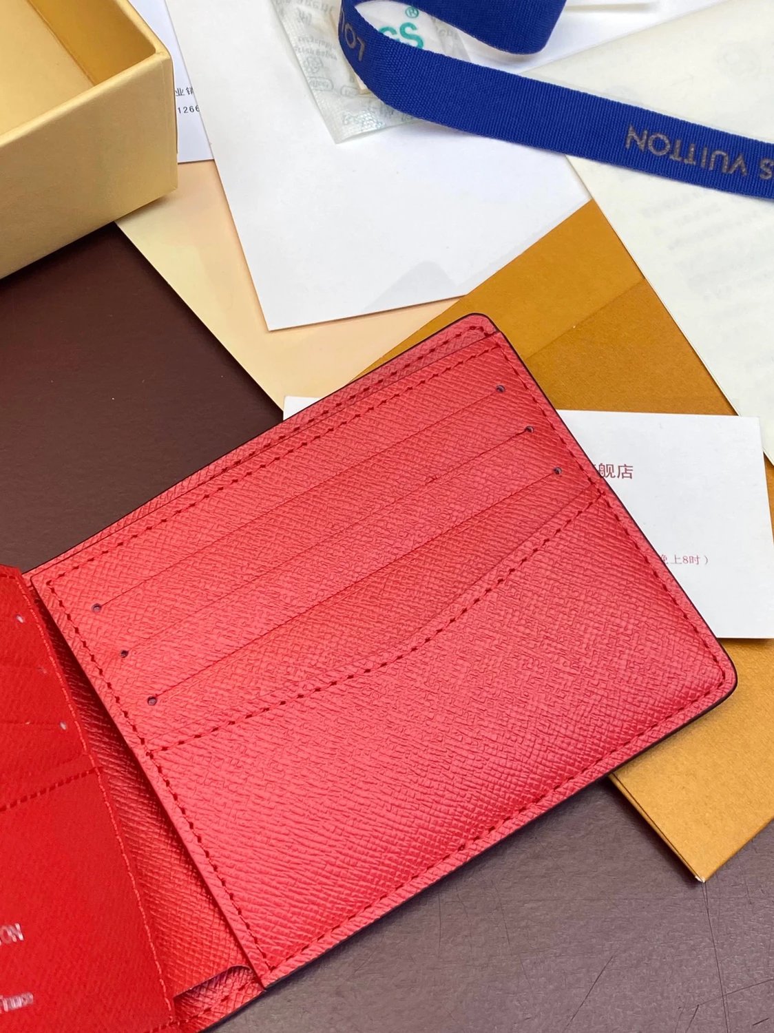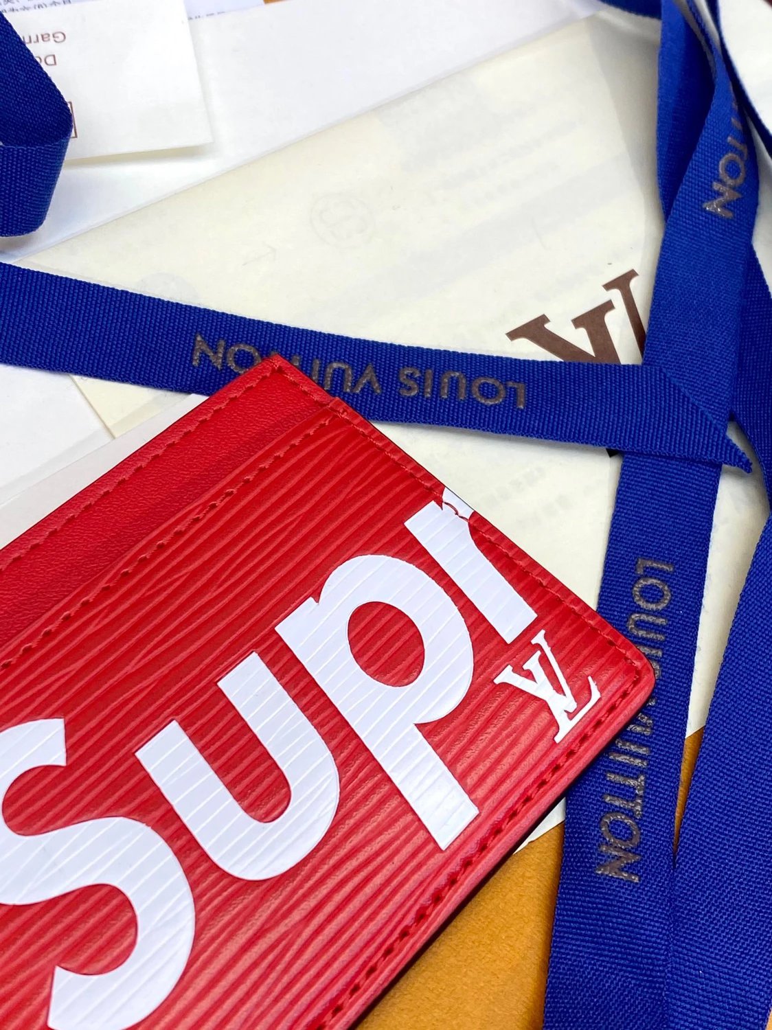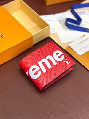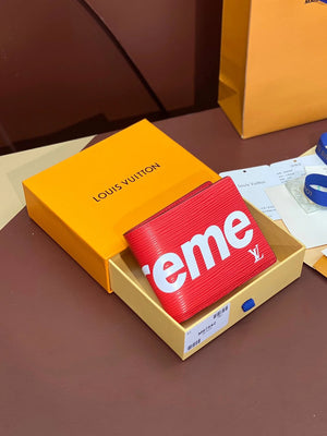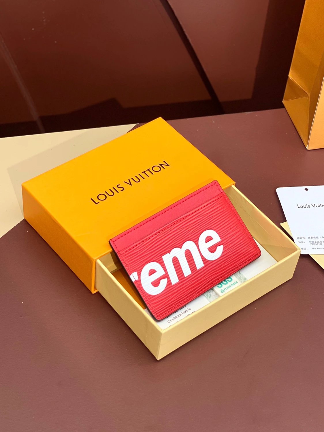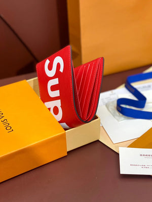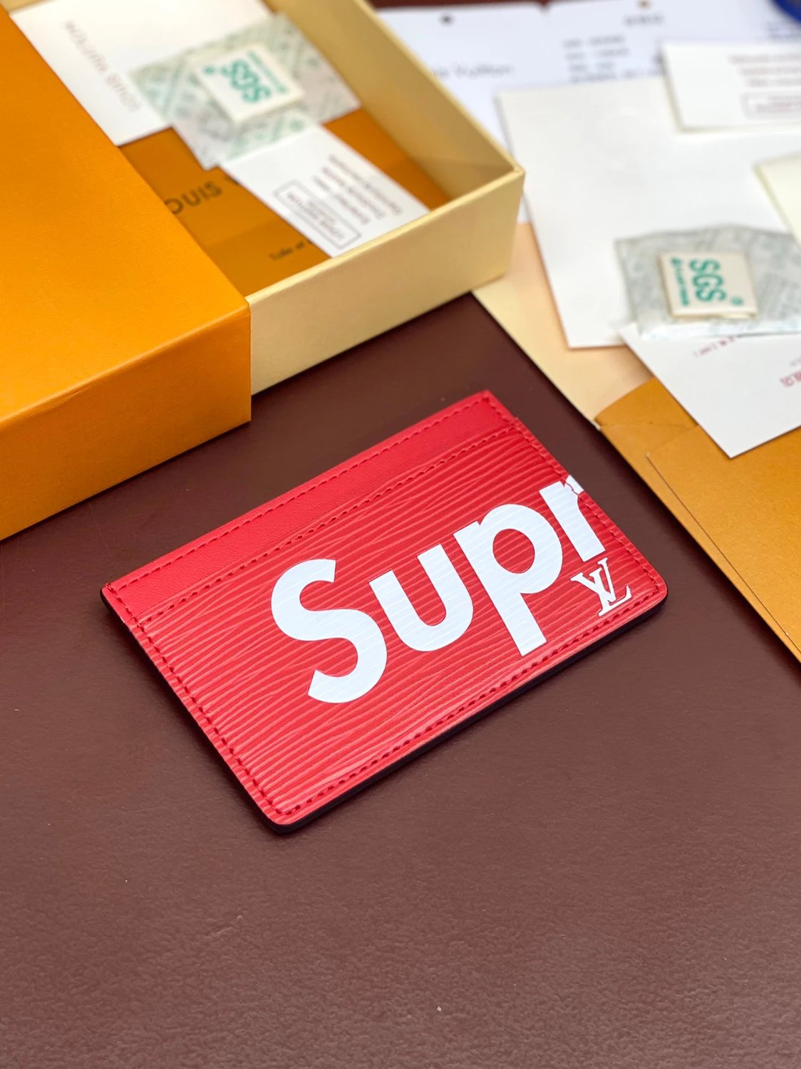 Supreme Is the Most Popular Official. Supreme Was Founded by James Jebbia 1994 in the United States Street Tide Brand. Lv Water Ripple Multiple Wallet Is Mainly Based on Skateboard Hip-Hop Culture. It Has Excellent Hand Feeling and Is Durable. It Is Made of **Cowhide and Is Full of Vitality and Charm Ten Times. Size: 11.5X9X1.5cm. M67543 Red/Black