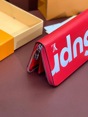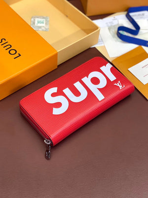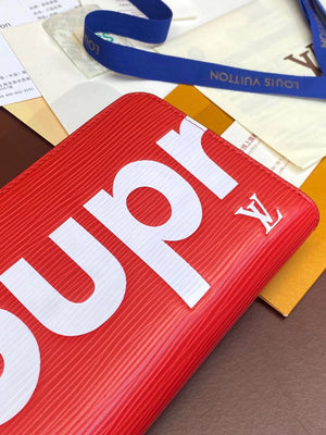 Supreme Is the Most Popular Official. Supreme Was Founded by James Jebbia 1994 in the United States Street Tide Brand. Lv Water Ripple Zippy Wallet Is Mainly Based on Skateboard Hip-Hop Culture. It Has Excellent Hand Feeling and Is Durable. It Is Made of **Cowhide and Is Full of Vitality and Charm Ten Times. Size: 19 × 10 × 2cm. M67541 Red/Black