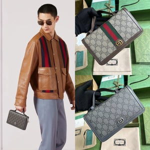 Gucci Wallet Top version **Original Leather New Ophidia Series Travel Clutch Card Holder Mobile Phone Bag Men's Clutch Double Zipper Multiple Card Slots Handbag Large Wallet Multifunctional Bag Men's and Women's Bags751610