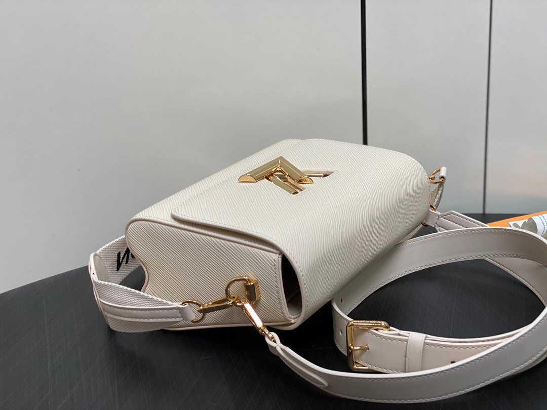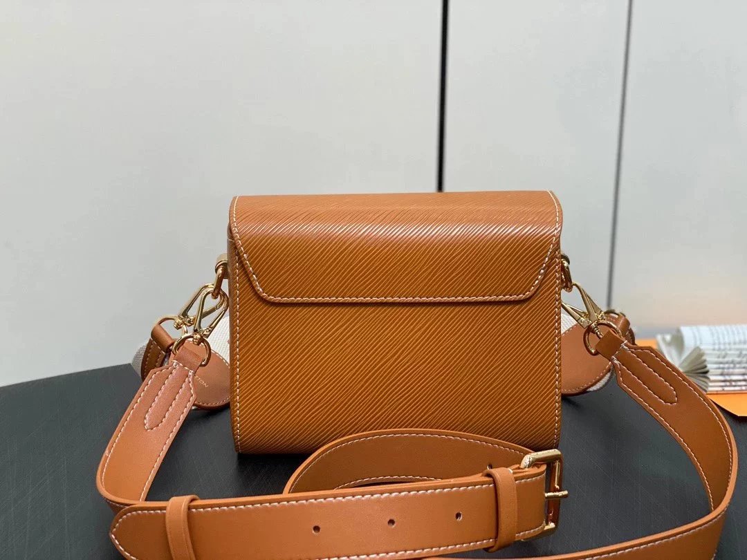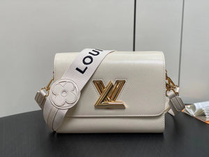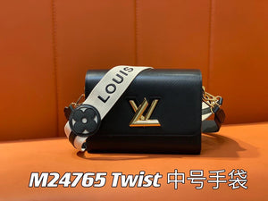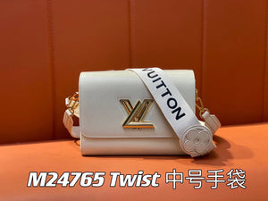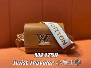 Louis Vuitton LV Women's Bag Top version 【Original Leather】New TwistTraveler Small Size Handbag Women's Bag Shoulder Crossbody Portable Double-Shoulder Strap Bag with Season Open Line Fabric Handle Integrated with Leather Monogram Flower&Twist Twistlock m