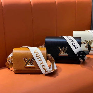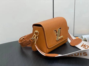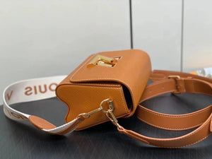 M24758 Caramel Water Ripple Twist Series This Twist Traveler Small Size Handbag Integrates Leather Monogram Flowers into the Handle of the Seasonal Bright Thread Fabric, and Then Lights up the Delicate Flip with Eye-Catching LV Twist Twistlock. The Detachable and Adjustable Wide Leather Shoulder Strap Provides a Variety of Carrying Methods to Make It a Modern Choice for Daily Travel.