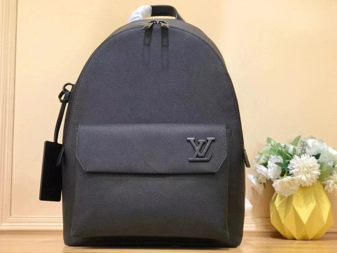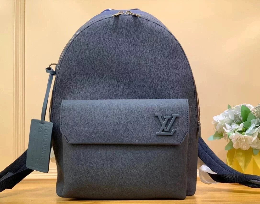 New Backpack New LV Aerogram Backpack with Elegant Temperament Innovation Trend Choice. Men's Delicate Calfskin Is as Soft as Old Aviation Letter, Decorated with Matte Metal LV Logo. The Main Compartment and Flip Front Pocket Provide Plenty of Accompanying Space for Weekend Trips Or Wandering around the City.