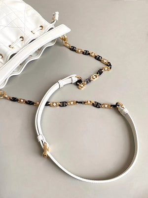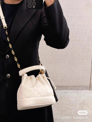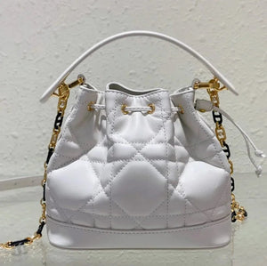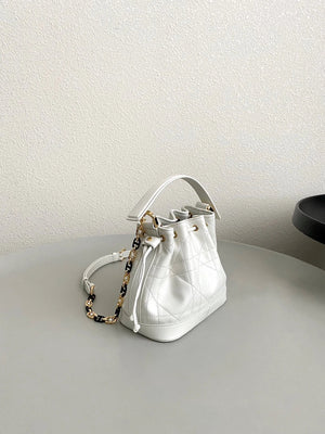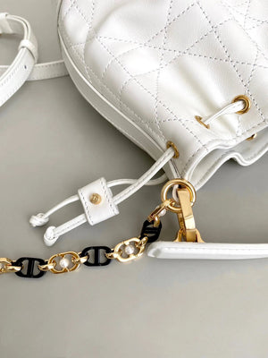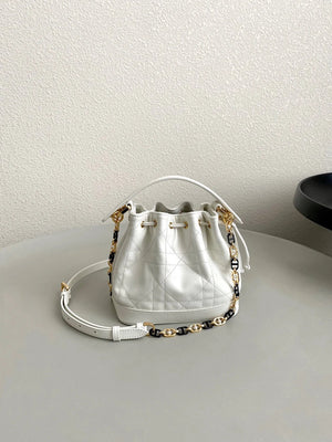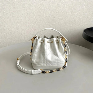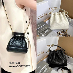 Home Dior Women's Bag Top version 【Original Leather Premium Version】2024New Jolie Bucket Bag Hand-Carrying Bucket Bag Pearl Chain Bag Two-Tone Letter Chain Crossbody Bag Small Bucket Bag