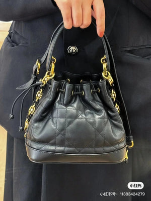 ? Small Size Dior Jolie Bucket Bag "Black 」 This Dior Jolie Bucket Bag Is a New Product of 2024 Autumn Clothing Series, Highlighting the Fashion Style. Crafted in Black Cow Leather, Decorated with Oversized Rattan Plaid Topstitching, with Drawstring Opening and Closing, the Interior Space Is Spacious. Small Size Style, Fashionable and Modern, Designed with Removable Black Leather Top Handle, and Adjustable and Detachable Chain Shoulder Strap Composed of Gold Finish Metal CD Chain Ring Embellished with Resin Beads, Portable, shoulder Or Crossbody Drawstring Closure Internal Pocket Top Removable Leather Handle Vintage Gold Finish Metal CD Chain Ring Chain with Resin Beading and Adjustable Leather Strap Model: 2780 Size: 17X16 X 9cm (Length X Height X Width) ? Medium Dior Jolie Bucket Bag Black 」 This Dior Jolie Bucket Bag Is a New Product of 2024 Autumn Clothing Series, Highlighting the Fashion Style. Crafted in Black Cow Leather, Decorated with Oversized Rattan Plaid Topstitching, with Drawstring Opening and Closing, the Interior Space Is Spacious. Medium Style, Fashionable and Modern, Designed with Removable Black Leather Top Handle, and Adjustable and Detachable Chain Shoulder Strap Composed of Gold Finish Metal CD Chain Ring Decorated with Resin Beads, Portable, shoulder Or Crossbody. Drawstring Closure Internal Pocket Top Removable Leather Handle Vintage Gold Finish Metal CD Chain Ring Chain with Resin Beading and Adjustable Leather Strap Model: 2780 Size: 21 × 20 × 12cm (Length X Height X Width) Instructions before Purchase