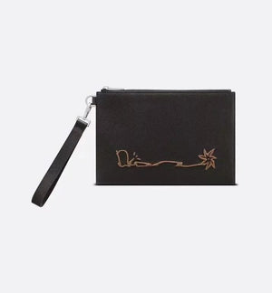 Dior Men's Bag Top version 【Original Leather Quality】22Autumn and Winter New Men A5Clutch Mobile Phone Bag Clutch and CACTUSJACK Exclusive Joint-Name Series Black Grain Side Cow Leather CACTUSJACK Logo Embroidered Handbag Men's Bag