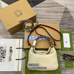? With Full Set (Large) Gucci Diana Series Large Backpack. This Medium Backpack Subtly Combines Two Recognizable Elements of the Brand-Bamboo Handle and Double G Accessories, Giving the Whole Shape a Unique Charm. This Accessory Is Crafted from White Leather and Matched with Contrasting Leather Shoulder Straps, Making the Whole Design More Eye-Catching. White Leather Piping, Gold-Tone Accessories, Microfiber Suede Texture Lining Double G, and Leather Shoulder Strap Interior: 1 One Zip Pocket, Bamboo Handle (25cm High) Adjustable Removable Leather Shoulder Strap (60cm High) Magnetic Snap. Model: 746245. Large Size: 34 (Width) X 26 (Height) X 9cm (Depth) (with Full Package) (Medium) This Medium Backpack Skillfully Combines the Two Elements of the Brand, Bamboo Handle and Double G Accessories, Giving the Whole Shape a Unique Charm. This Accessory Is Crafted with Black Leather and Gray Contrast Color Leather Shoulder Straps, Making the Whole Design More Eye-Catching. Model: 746124 Medium Size: 30*23 * 6.5cm Color: Black Original Leather (with Full Package) (Small Size) This Gucci Diana Bamboo Handbag Combines Two Recognizable Brand Elements: Bamboo Handle and Double G Accessories. This Accessory Is Crafted from Black Leather and Matched with Black Color Matching Leather Shoulder Straps, Making the Whole Design More Eye-Catching. Model: 746251 Small Size Size: 24*15 * 5cm Color: Black Original Leather before Purchase