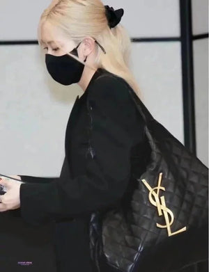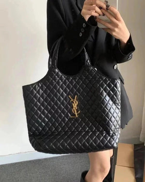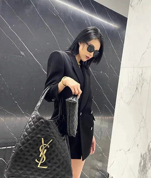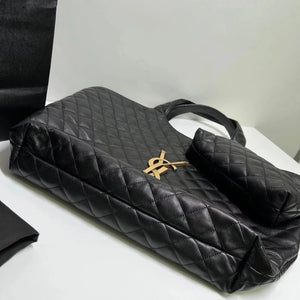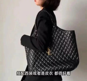 22 Spring and Summer New Icare Maxi Tote Handbag, One of the Most Popular Items This Season; the Enlarged Logo Is Handmade, Black and Gold Classic Color Matching, **Sheepskin Feels Soft and Delicate, the Weight Is Super Light, but the Capacity Is Super Practical! Huge Hardware Has Become the Absolute Visual Focus,