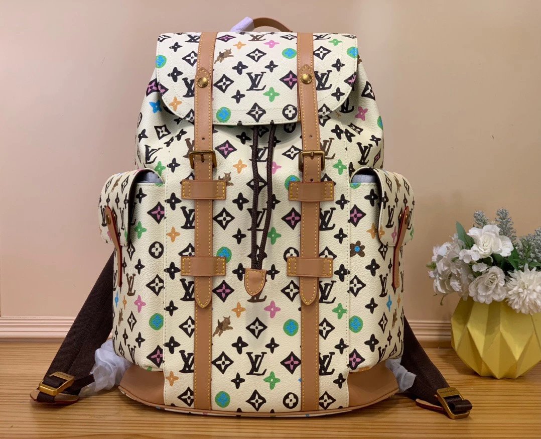 Louis Vuitton LV Backpack Top version 【Original Leather Top Version】24Spring and Summer New M25240White Color M41379Christopher Small Size Backpack Men's Backpack Hiking Backpack Tyler Joint Backpack Men's and Women's Bags