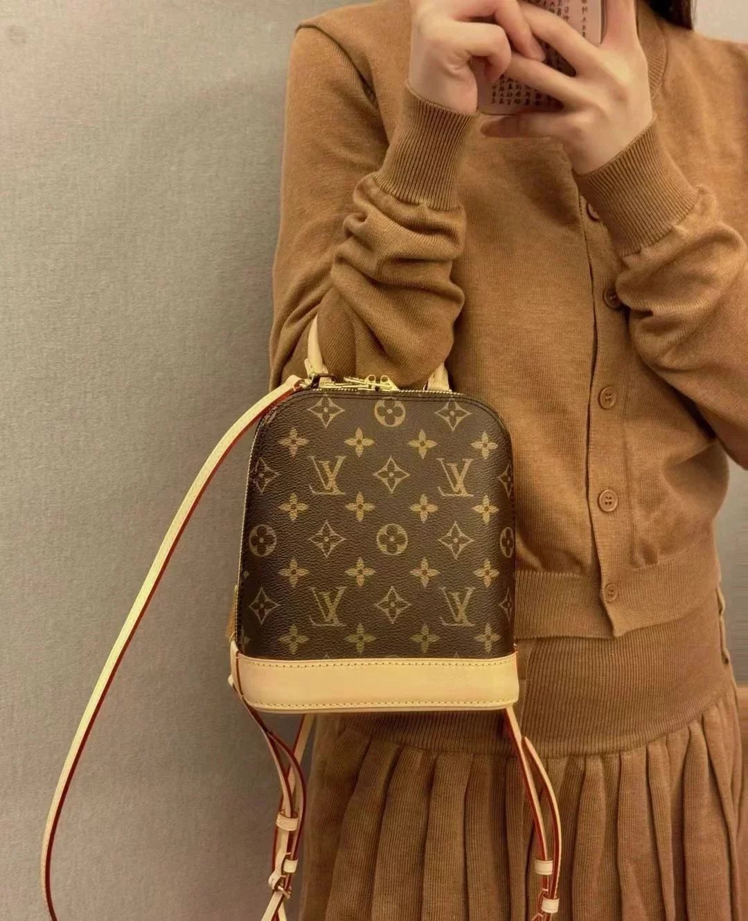 Louis Vuitton LV Backpack Top version 【Original Leather Version】24New Spring and Summer Women's Clothing Series Alma Backpack Small Bookbag Backpack mini Shoulder Bag Women's Bag Shell Backpack Handbag Shell Bag M47132M25103M25104