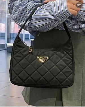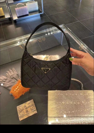 PRADA Bag Top version Original Order Autumn and Winter New Nylon Shoulder Girdle Hobo Diamond Pattern Bag Nylon Shoulder Bag Underarm Bag Handbag Women's Bag20001NE515A