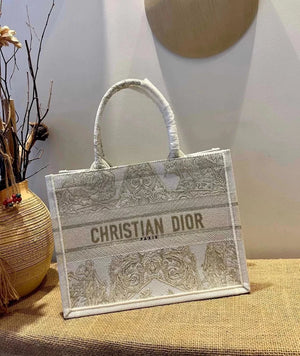 Dior Women's Bag Top version 【Original Order】Christmas Limited Edition booktote Gold Thread Series Lucky Star Embroidered Tote Bag Women's One Shoulder Handbag Shopping Bag Mummy Bag