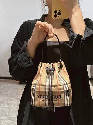 Burberry Women's Bag Top version 【Original Order】Drawstring bucket bag mini Drawstring Bucket Storage Bag Classic Plaid Buggy Bag Small Bucket Shoulder Bag Crossbody Bag