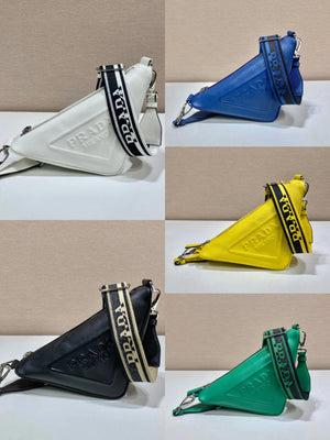 This Triangle Bag Captures the Symbolic Geometric Shape of P's Home and Is Made of the Brand's Iconic Saffiano Leather, Presenting Unique Cross-Parallel Features and Greatly Embossed Triangle Logo. The Favorite Is This Web Embroidery Shoulder Strap? It Can Be Removed and Matched with Other Bags. The Capacity Is Very Large, and the Feel Must Be Soft?? For Men and Women Models??, Perfect, Hurry up and Buy It??