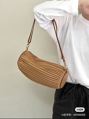 This Multifunctional Tubular Pouch Is Made of Pleated Napa Sheep Leather and Can Be Converted to Bracelet. Both Ends Are Decorated with Embossed Sheep Leather Ornamental Plate.