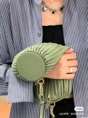 LOEWE Women's Bag Top version 【Original Quality】2024New Product BraceletPouch Pleated Tote Bracelet Bag Women's Bag Handbag Underarm Bag Clutch Shoulder Bag Pleated Napa Cowhide round Bag Luo Jia New Pen Holder Bag Chain Small Bag Shoulder Messenger Bag52