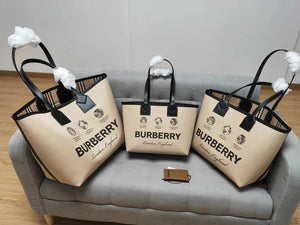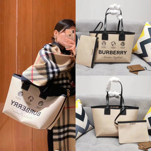 Burberry Women's Bag Top version Original Quality Large Capacity Shopping Bag TheBelt Canvas Tote Bag Mother and Child Bag Shopping Bag Shoulder Handbag Women's Bag
