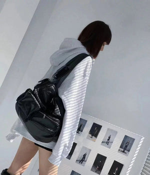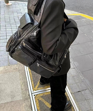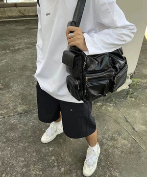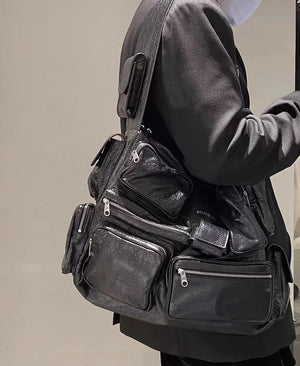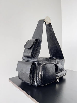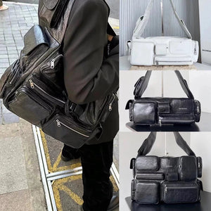 Essential Item for Fried Street, Sheepskin Material Retro Workwear Pocket Decoration, Super Practical Shoulder Bag, Dark Punk Locomotive Multi-Functional Tote Underarm Bag, Full Score When out of the Street?, Same Style for Men and Women, a Must-Have Tool for Travel