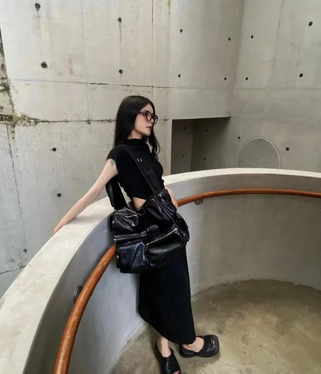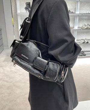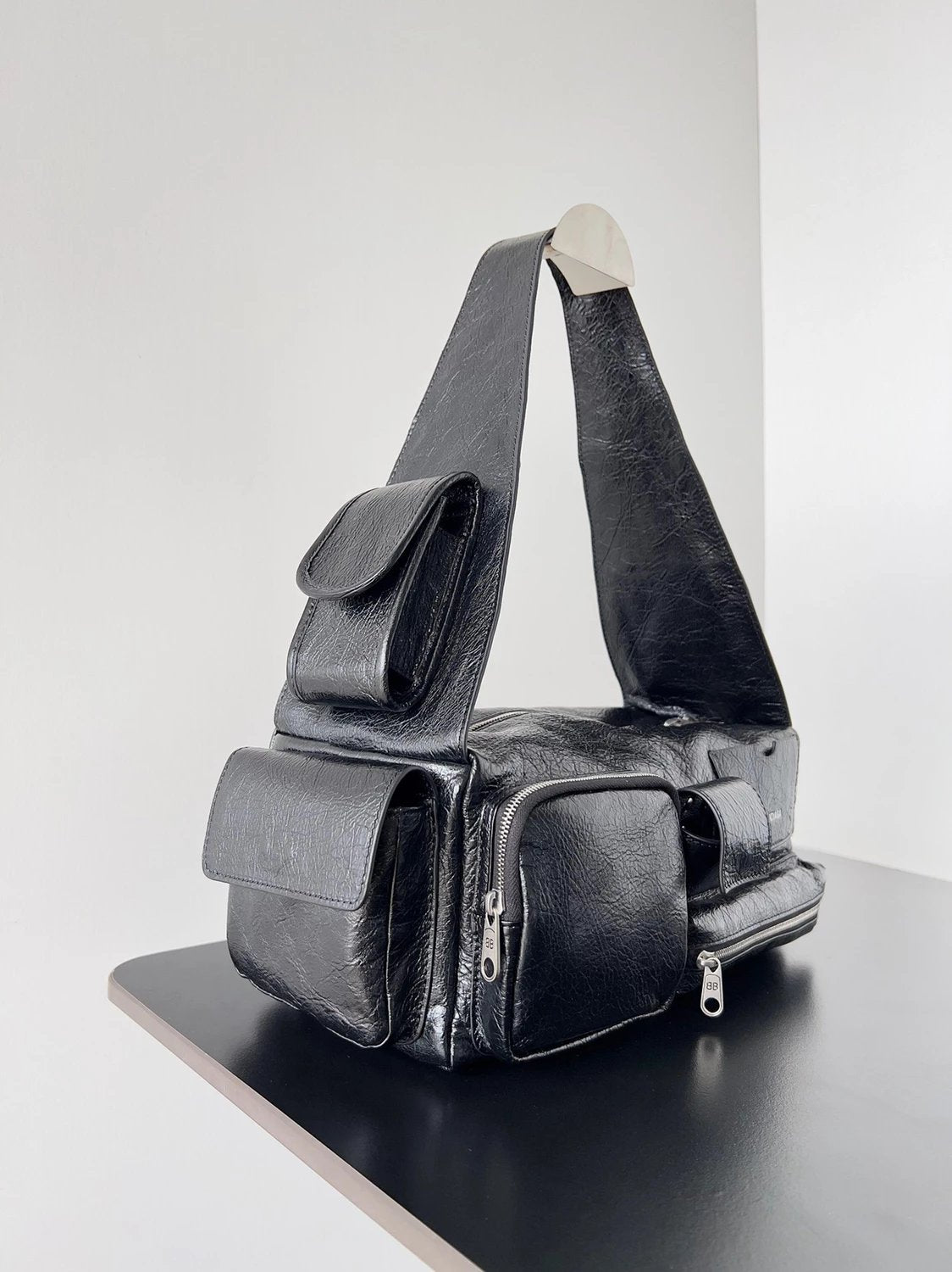 Balenciaga Bag Top version 【Premium Ceiling Quality】gasuperbusy Series Fried Street Essential Product Sheepskin Material Retro Workwear Pocket Bag Large Pocket Tote Bag Backpack Retro Workwear Handbag