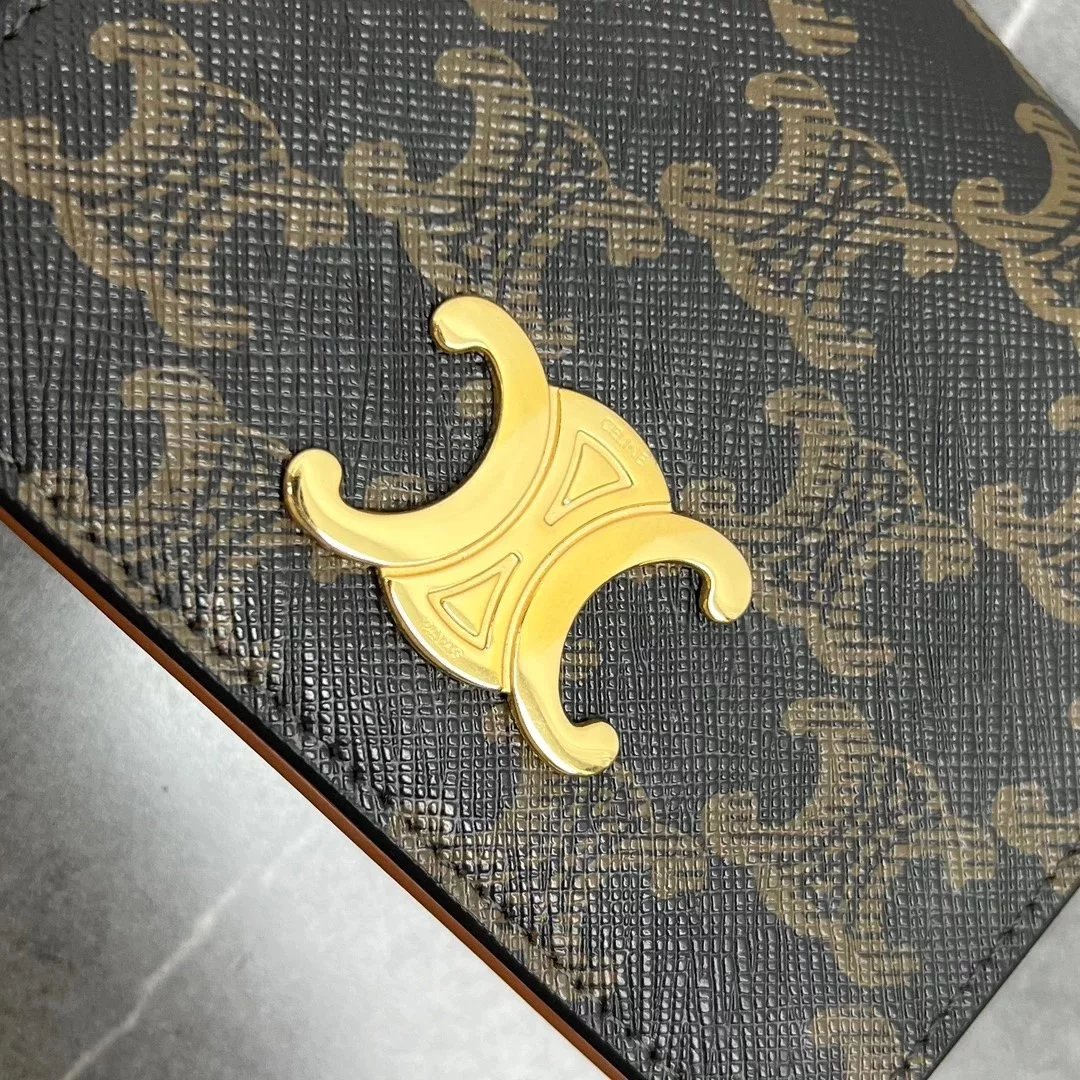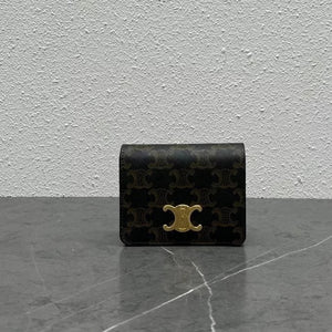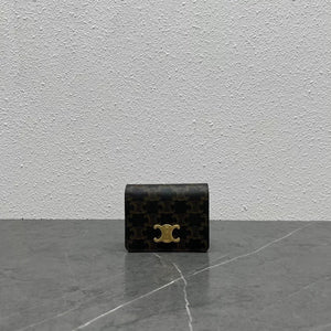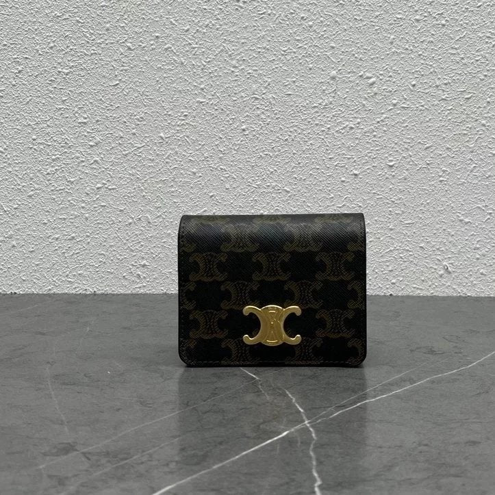 Celine Wallet Top version 【Premium Original Leather】2024New Sale Short Arc De Triomphe Hardware Buckle Wallet.TRIOMPHE Pure Steel Arc De Triomphe Snap Button Closure Short Wallet Women's Presbyopic Wallet Men's Short Wallet