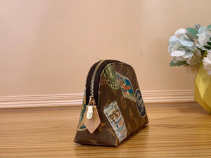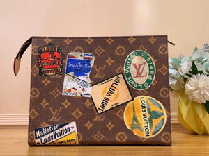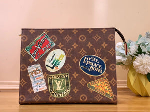 Basic Product "Pochette Cosmetic PM" Made of Monogram PMS Canvas ". It Reminds People of the Design of Retro Stickers of the World's High-End Hotels. as You Approach, You Can See That It Is Louis Vuitton Stickers. This Is an Extremely Attractive Little Cosmetic Bag That Makes People Feel the Connection with Maison's Luxury Travel Roots.