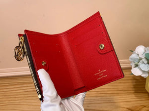 "Portefeuil Lisa" Made of Monogram Canvas and Colorful Leather Lining ". Compact Wallet with Interlayer Coin Pocket with Handle LV Ring, Suitable Size for Small Bag and Clutch Is Also Very Attractive. Inside There Is a Paper Currency Compartment, 2 One Flat Pocket, 4 One Card Slot.
