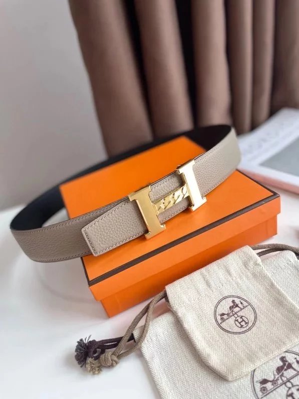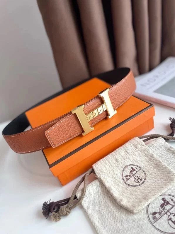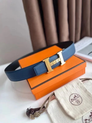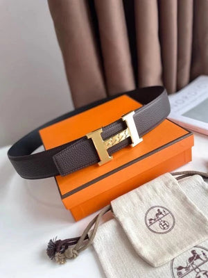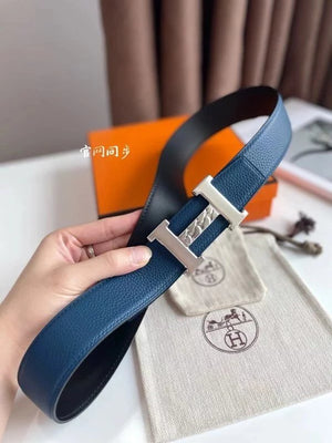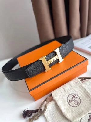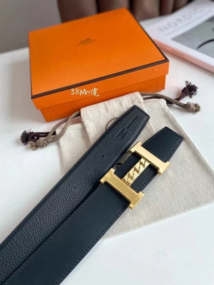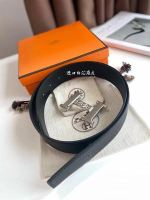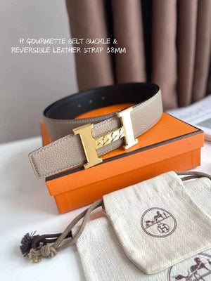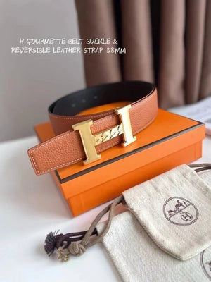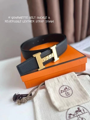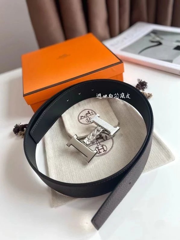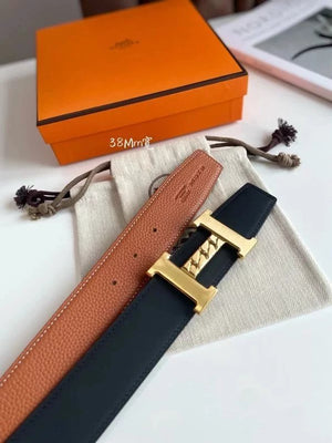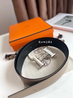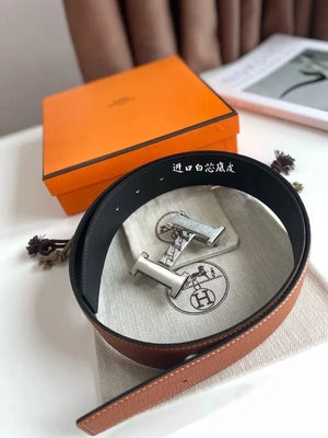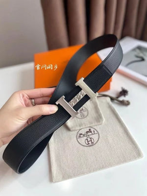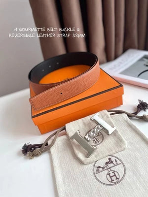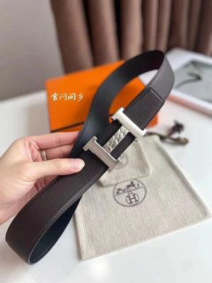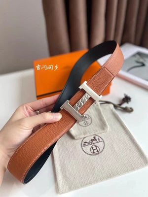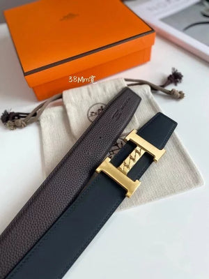 Hermes Belt Top version 【Products in stock new】Belt Men's Leather Belt Double-Sided Available Smooth Buckle Business Casual Belt38MM