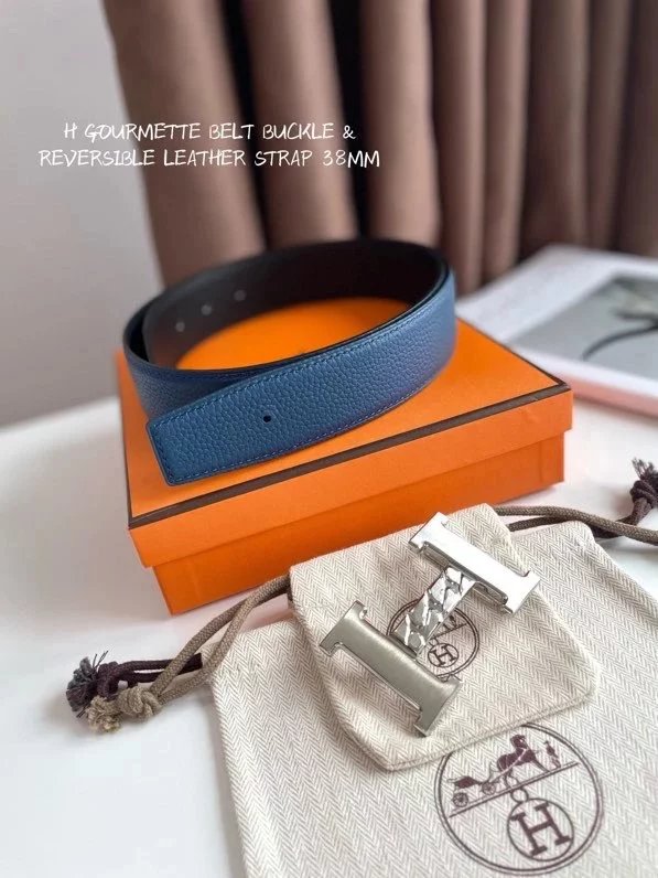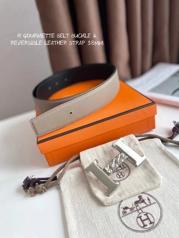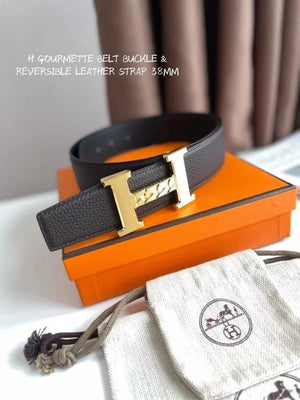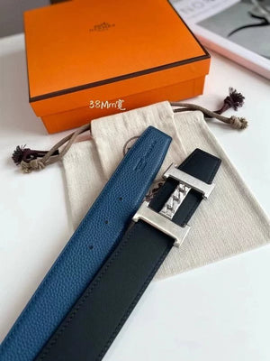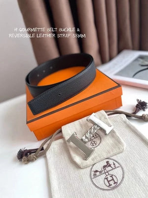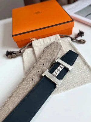 [Products in Stock New] Hermes Belt Men's Leather Belt Double-Sided Available Smooth Buckle Business Casual Belt 38mm Instructions before Purchase