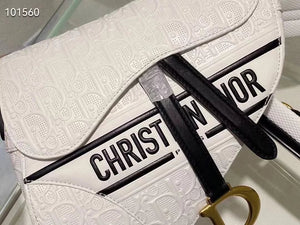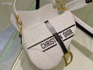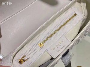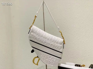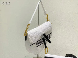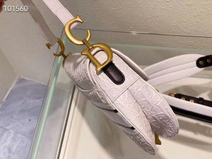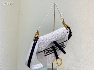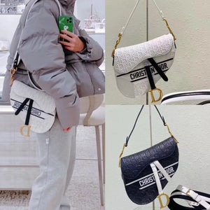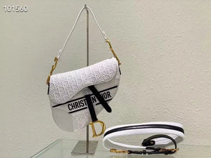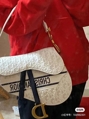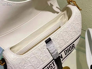 The Iconic Saddle Bag Is Crafted in White Cow Leather and Reinterpreted by Maria Grazia Chiuri. Stirrup "D" Shaped Pendant and Saddle Flap Highlight the Classic Design of the Brand, Decorated with Oblique Printing Effect Hollow Pattern, Matched with Magnet Buckle, and Decorated with Retro Gold Finish Metal "CD" Logo on Both Sides of the Handle. with an Adjustable and Detachable Embroidered Wide Shoulder Strap, It Can Be Carried, Shoulder Or Crossbody.