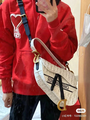 Dior Women's Bag Top version Saddle Bag Handbag Crossbody Bag Lady's Bag Full Leather Saddle Bag2022New Women's Bag Men's Bag Stirrup“D”Shaped Pendant and Saddle Flap Highlight Brand Classic Design,Decoration Oblique Printing Effect Hollow Figure