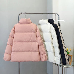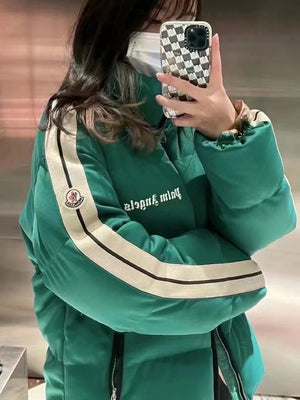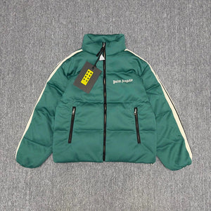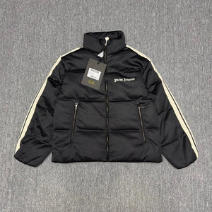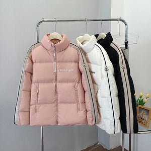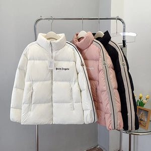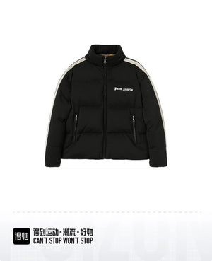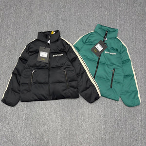 Palm Angels Down jacket Top Version Side Striped Joint Men's and Women's Loose down Jacket Zipped Stand Collar Coat Fashion