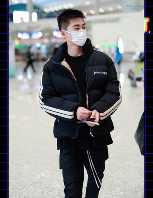 Wang Yibo, Wang Yuan, Zhang Han, Beige Khaki and Many Other Stars Have Upper Body. around the Concept of the Ancient Store, While Maintaining the Original Function and Minimalism, This Point of American Culture, the Solid Color of the Big Body Is Fluffy, but There Is No Bloated Feeling, and the Stand Collar Shape Is Pulled up, the Letters of Palm Angels on the Chest Became the Protagonist, and the Creamy-white Wide Trim on the Sleeves on Both Sides Was Matched with the Black Lines in the Middle, Which Was Full of Retro Sports Campus Style, and There Was a Signature Small Logo of One Moncler's Unique Shape on the Arm, the Joint-Name Series Is Obvious. in Addition to Regular Black, They Bring Colors Similar to Classic Black and Peacock Green Respectively, Which Are Quite Eye-Catching for Aging Reduction and Exit. Treasure Item Not to Be Missed