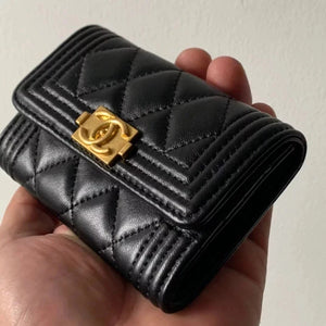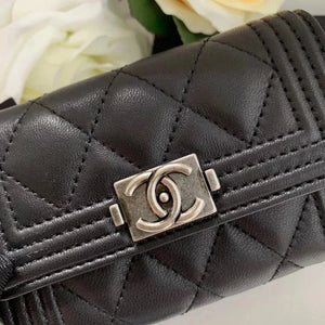 CHANEL leboy小卡包到货!小羊皮 小牛皮菱格纹路,非常耐看!复古鎏金与复古古银五金非常时髦 这款卡包容量很大,一百块对2折能放一千左右,还能塞2.3张卡, 很实用!款号80603尺寸11*8.5*3cm牛皮鱼子酱球纹购前说明