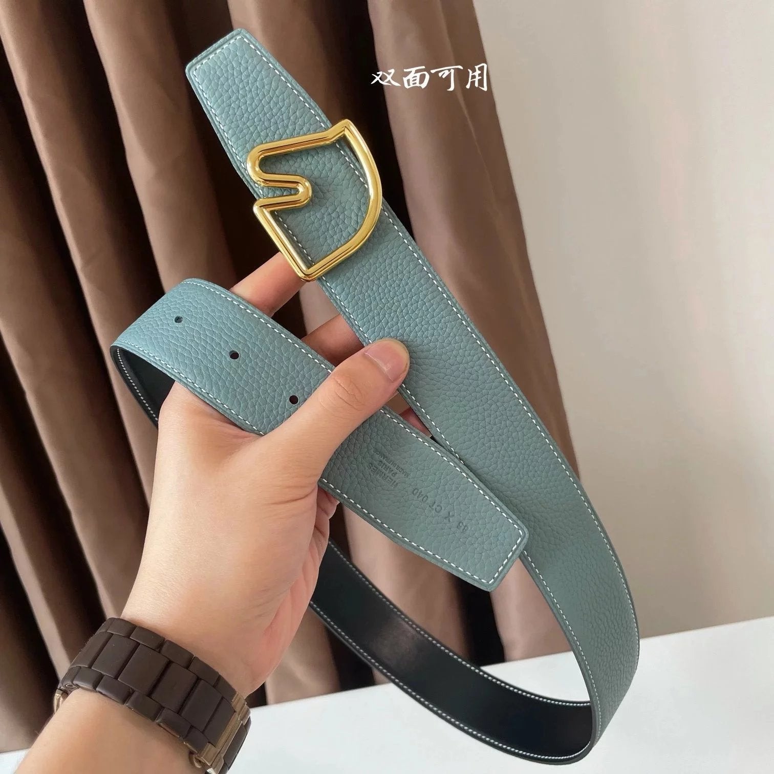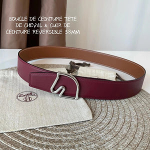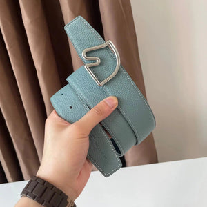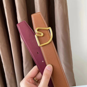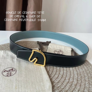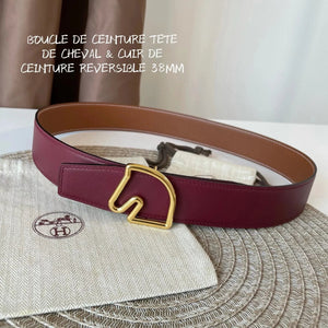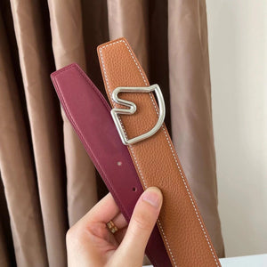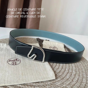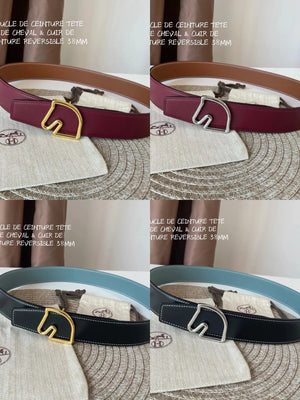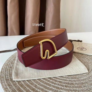 [In Stock High Quality] New H Buckle Hermashi Double-Sided Cowhide Men's Leather Belt Genuine Leather Business Man's Belt Italy Imported First Layer Cowhide Leather Pure Steel Buckle before Purchase Instructions