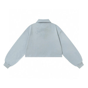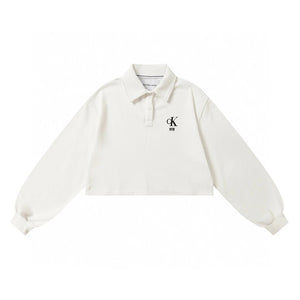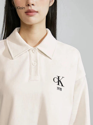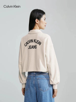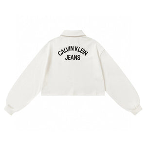 Calvin Klein Hoodie Top Version Spring and Autumn Women's Casual University Style Flocking Letter Half Placket POLO Collar Cotton Sweater