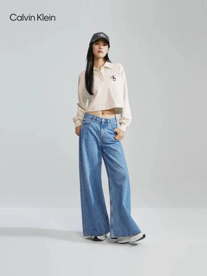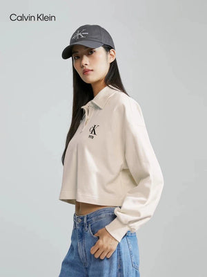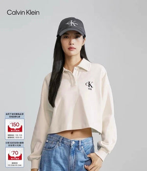 **Version CK Jeans Spring and Autumn Women's Casual University Style Flocking Letter Half Placket Polo Collar Cotton Sweater before Purchase Instructions