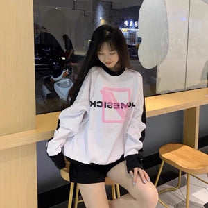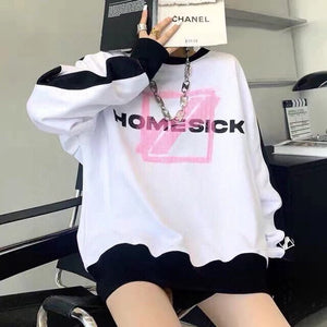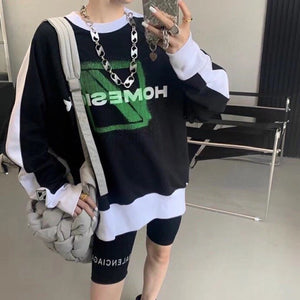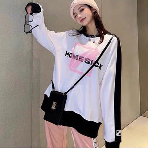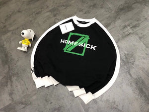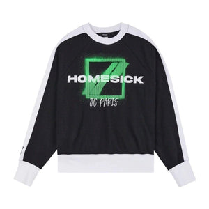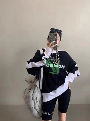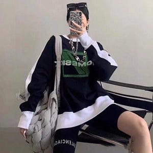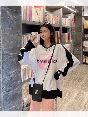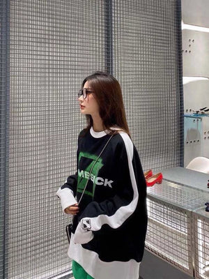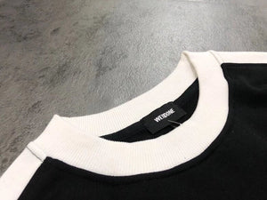 We11done 21ss Autumn and Winter New Square Letter Printing Black and White Stitching Long Sleeve Sweater Loose Top Fashion