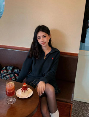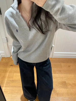 Ralph Lauren Hoodie Top Version Standard Embroidery Men's and Women's Same Style Half Long-Sleeve Zipper Turtleneck Sweater Spring and Autumn