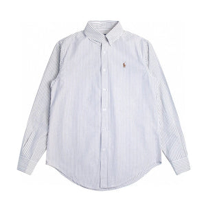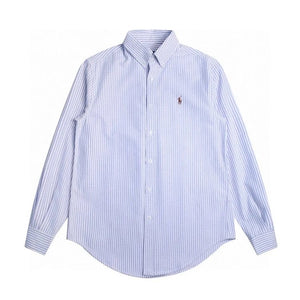Ralph Lauren Shirt Top Version Standard Oxford Woven Striped Embroidered Breasted Lapel Long Sleeve Casual Shirt for Men and Women